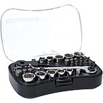 Features:- Set includes MicroDrive Gear Wrench; square end 1/4 inch adapter; 5 piece 6 point metric socket set; 5 piece 6 point standard socket set; 18 piece 1/4 inch shank bits set and 5 piece 5/16 inch shank bits set