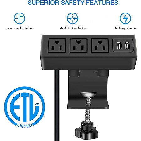 3-Outlet CCCEI 1200J Desk Clamp Power Strip w/ 2 USB Ports $7 + Free Shipping w/ Prime or Orders $25+