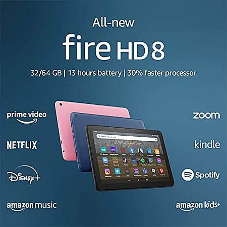 Amazon has 32GB Amazon Fire HD 8 WiFi Tablet (2022 Model) on sale for $54.99. Shipping is free.