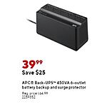 At Staples - APC® Back-UPS 450VA 6-outlet battery backup and surge protector for $39.99 - from Nov. 20 - Nov. 26