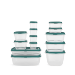 This 26-piece set includes (all with lids): four 0.5-cup containers, two 1.25-cup containers, two 2-cup containers, two 5-cup containers, one 5.5-cup rectangle container, one 7-cup container, and one 8.5-cup rectangle container