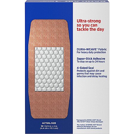 8-Pk 10-Ct Band-Aid Tough Strips Adhesive Bandages (Extra Large)