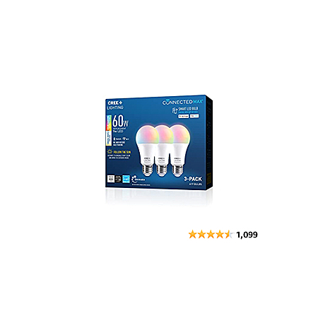 Cree Lighting Connected Max Smart Led Bulb A19 60W Tunable White + Color Changing, 2.4 Ghz, Compatible with Alexa and Google Home, No Hub Required, Bluetooth + WiFi, 3Pk - $15.00