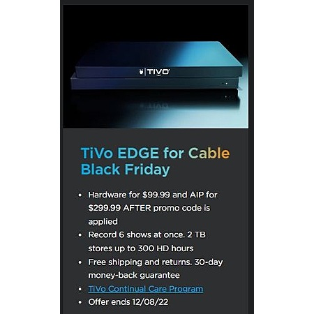 Tivo Edge 2TB for Cable W/ Lifetime All-In Plan $399.98