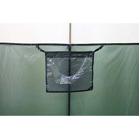 • Two strings of LED lights hang conveniently inside tent (batteries not included)Includes two 2' deep closets with large mesh hanging organizer and gear hanger with four carabiners