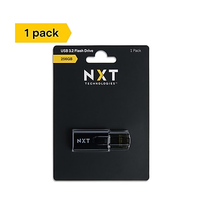 Transfer files between multiple devices with this USB 3. 2 flash drive. The 256GB storage capacity provides ample space to accommodate large videos and music files, while the LED indicator lets you know when the device is connected and transferring data. Read speeds of up to 20MB/s enable quick access to your stored data. This NXT Technologies™ USB 3. 2 flash drive features a retractable design for safe storage when not in use. . Universal compatibility with USB 2. 0/3. 0/3. 1 Gen 1/3. 2 Gen 2. Features a sleek ABS plastic housing in black. 2-year manufacturer limited warranty. Convenient and reliable portable data storage with retractable design for enhanced portability and quick content transfer. Capacity: 256GB. LED transfer light indicates and communicates that the device is in use and data is being transferred. Lanyard hole allows for easy carrying. Compatible operating systems: Windows XP/Vista/7/8/10 or higher, macOS 10. 4 or higher, Linux 2. 6. 31 or higher. USB 3. 2 interface for quick data access and transfer. Easily fits in pockets and bags for easy transport. Maximum read speed: 20MB/s; maximum write speed: 10MB/s. Store your documents and large media files securely with this NXT Technologies™ 256GB USB 3. 2 flash drive.