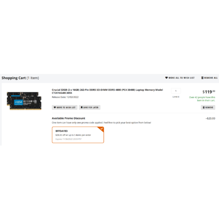 Unlock the potential of your 12th Gen Intel Core laptop processorsHarness blazing speeds and massive memory bandwidth Game at higher frame rates, run demanding software, and power through heavy workloadsCompatible only with DDR5-enabled laptop, not DDR4-enabled laptopsECC type = non-ECC, form factor = SODIMM, pin count = 262-pin, PC speed = PC5-38400, voltage = 1.1V, rank and configuration = 1Rx8