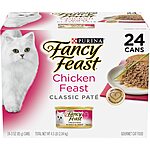 Amazon has 24-Ct 3oz Purina Fancy Feast Grain Free Classic Pate Wet Cat Food (Chicken Feast) for $15. Shipping is free w/ Prime or on $25+.