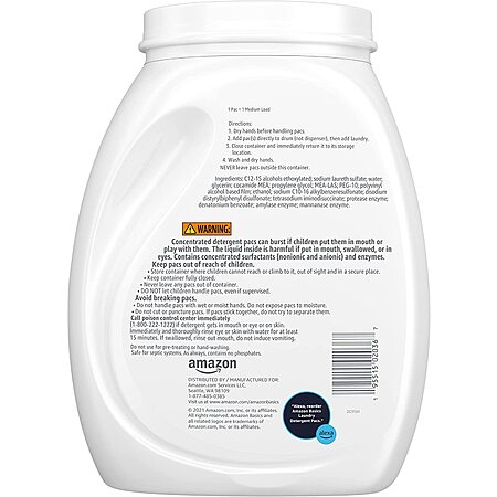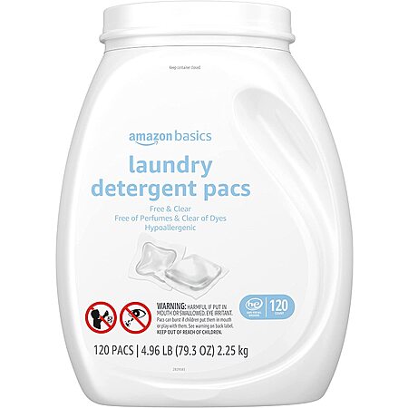 120-Count Amazon Basics Laundry Detergent Pacs: Lavender $9.95, Free & Clear