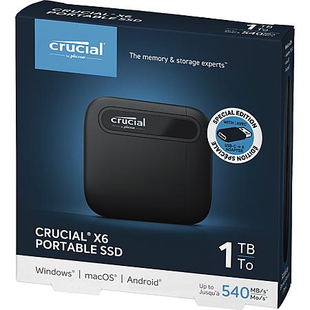 Crucial - X6 SE 1TB External USB-C/USB-A Portable SSD.