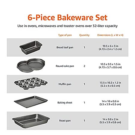 Amazon Basics 6-Piece Nonstick, Carbon Steel Oven Bakeware Baking Set - $18.12 - Amazon