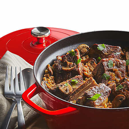Versatile: heavy-duty enameled cast-iron cooking pot is removable, oven and stovetop-safe and looks beautiful on your table