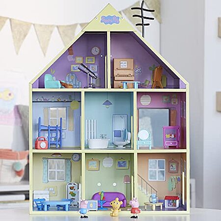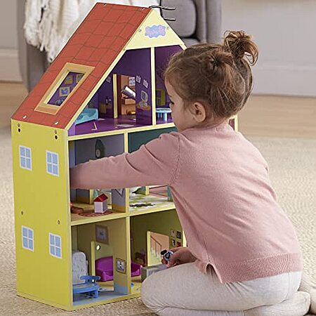 WITH 3 LEVELS AND 8 ROOMS TO DISCOVER, the Peppa Pig Wooden Deluxe Playhouse gives preschoolers and Peppa fans ages 3 and up lots of room to explore and play. It comes packed with 29 accessories, too