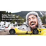 *Discount applies to pay later base rate. Discount will vary depending on location, date, length of rental, car class & other factors; discount will not apply in all cases. Base rate includes time and mileage charges only. Taxes and fees excluded. Minimum 1 day rental required. This offer is available at participating Hertz locations in the U.S. 24 hour advance reservation required. Car classes subject to availability. Excludes Dream car class. Offer has no cash value, and may not be used with other discounts, promotions or special rates. Offer valid for vehicle pick-up from 11/25/2022 through 1/31/2023 for corporate airport locations and 11/25/2022 through 1/9/2023 for off airport locations. Subject to availability, blackout periods and additional restrictions. Click here for full terms and conditions.