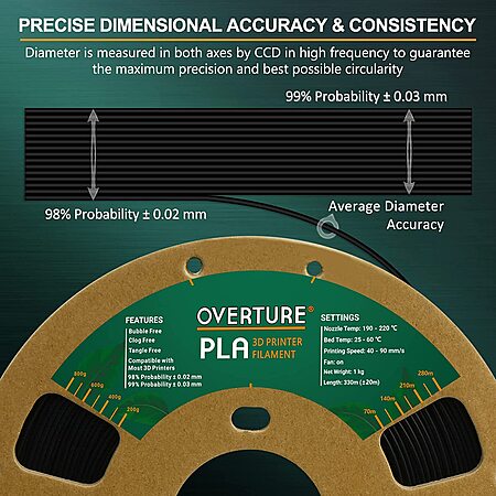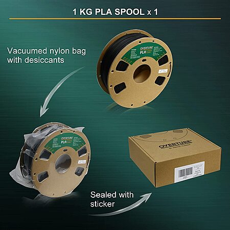 1kg Overture 1.75mm PLA 3D Printer Filament (Black)