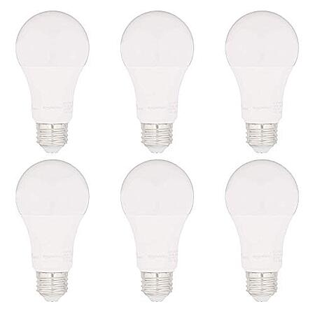 Amazon Basics 100W Equivalent, Daylight, Dimmable, 10,000 Hour Lifetime, A19 LED Light Bulb | 6-Pack for