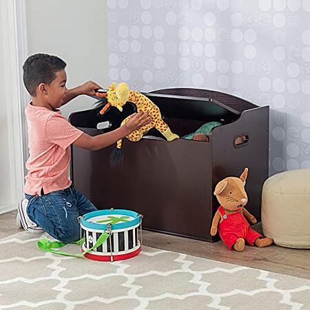 KidKraft Austin Wooden Toy Box/Bench w/ Safety Hinged Lid (Espresso)