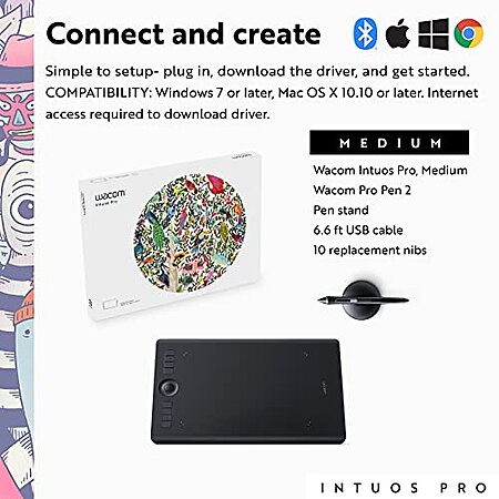 Wacom Intuos Pro Medium Bluetooth Graphics Drawing Tablet, 8 Customizable ExpressKeys, 8192 Pressure Sensitive Pro Pen 2 Included, Compatible with Mac OS and Windows $239.95