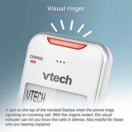 • Designed with a lighted up visual ringer on top of the handset for noisier environments