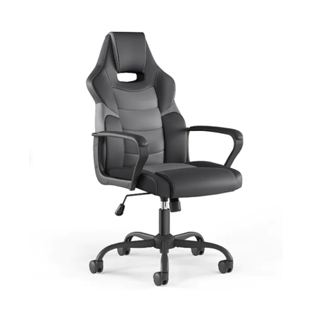 Emerge Vector Bonded Leather Gaming Chair, Black & Gray (61108) [staples.com]