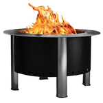 The fire pit has holes on the bottom and top. As the smoke rises past the top hole level the fresh oxygen results in the smoke igniting and thus achieving "smokeless".
