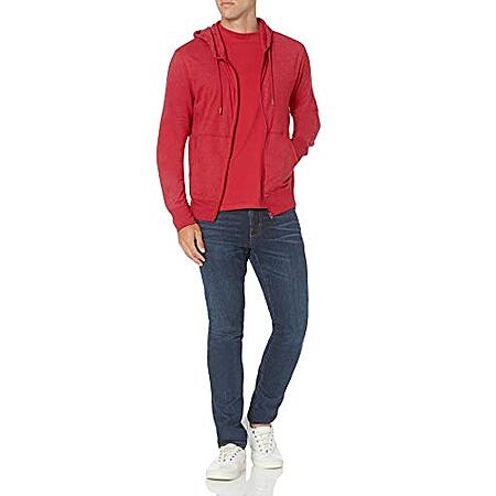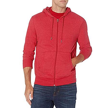 Model: Amazon Essentials Men's Lightweight Jersey Full-Zip Hoodie, Red, Large