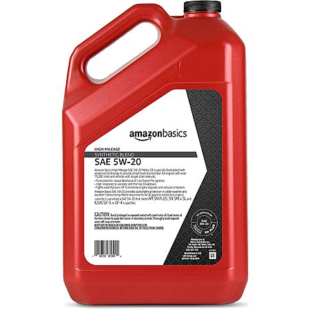 Model: Amazon Basics High Mileage Motor Oil - Synthetic Blend - 5W-20 - 5 Quart