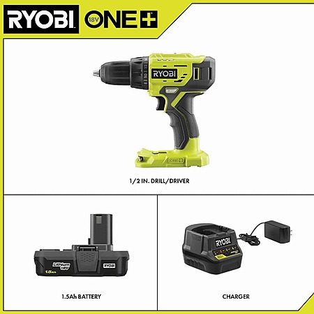 RYOBI ONE+ 18V Lithium-Ion Cordless 1/2 in. Drill/Driver Kit and free 2 pack 4AH batteries, hackable