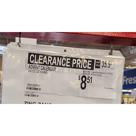 The Sam's in Stafford, Texas (between Houston and Sugar Land on 59/W Airport) has the 24 pack Minhas Craft Brewery Variety Pack Advent Beer Calendar for $8.51. That's 35.5 cents a beer! I picked up a few cases.