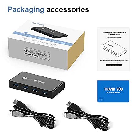 Rybozen 2-PC 4-Port USB 3.0 Switch Hub (Share 4 USB Devices Between 2 PCs)