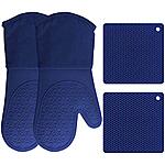Model: HOMWE Silicone Oven Mitts and Pot Holders, 4-Piece Set, Heavy Duty Cooking Gloves, Kitchen Counter Safe Trivet Mats, Advanced Heat Resistance, Non-Slip Textured Grip