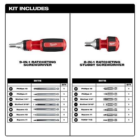 Milwaukee Ratcheting & 9-in-1 Torx Drive Multi-Bit Screwdriver Set