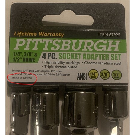 Only 75 cents per adapter socket with a lifetime guaranty. I think this is an overlooked deal, as nobody else is really close to this price. Sure, for $8 or $10 you might be able to find a similar generic set with an inferior warranty, but that's 100% more expensive. As an ex, case in point --- HD's Husky 3 pc set, not 4 pc, 3 pc set is $14.97. HD sells a 4 pc Tekton set for $18. Amazon, eBay, Lowe's, Walmart, Advance Auto... none could beat HFT's price.