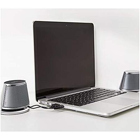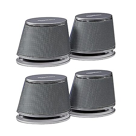 Model: Amazon Basics USB Plug-n-Play Computer Speakers for PC or Laptop - 2 Pair (4 Speakers), Silver with Blue LED Light