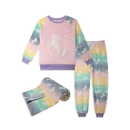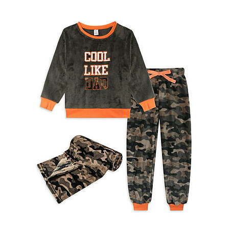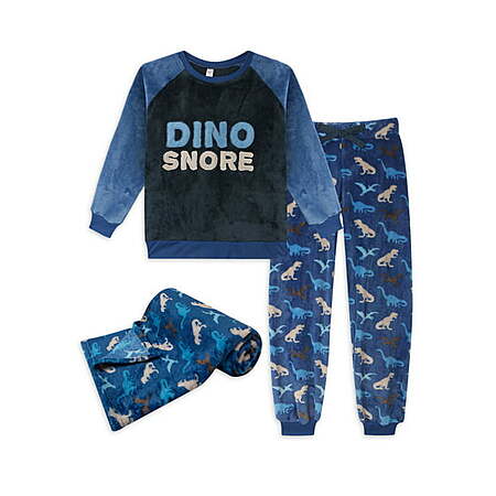 3-Piece Modern Kids Boys' Long Sleeve Top & Pants Pajama Set w/ Blanket (various styles) on sale for