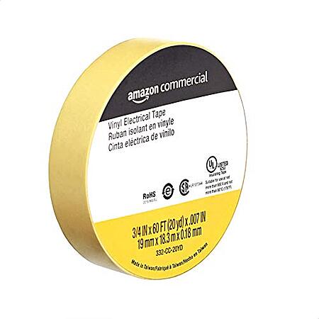 Model: AmazonCommercial Vinyl Electrical Tape, 3/4 in x 60 ft x 0.007in (19 mm x 18.3 m x 0.18mm), Yellow, 6-Pack