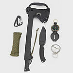 Set includes: 4-In-1 Hatchet and Saw, 4" Fixed Blade Knife, 50 Foot Paracord, Compass, Commando Saw, and Carabiners