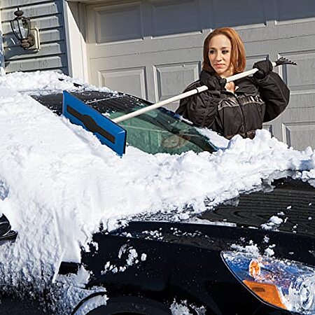 Model: Snow Joe SJBLZD The Original 2-in-1 Telescoping Snow Broom + Ice Scraper w/18-Inch No-Scratch Foam Head, Closed Cell Foam for No Water Absorption, Blue