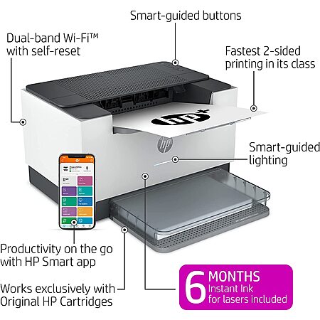 HP LaserJet M209dwe Wireless Black & White Printer with HP+ and 6 Months Free Cartridges (6GW62E) $99