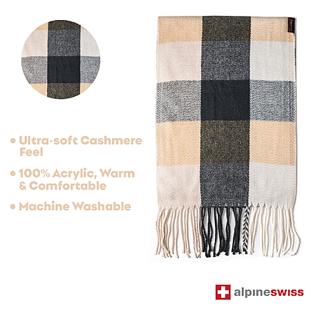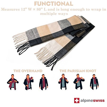 Alpine Swiss Men's Scarf Softer Than Cashmere Scarves Plaids Women's Winter Shawl $11.69
