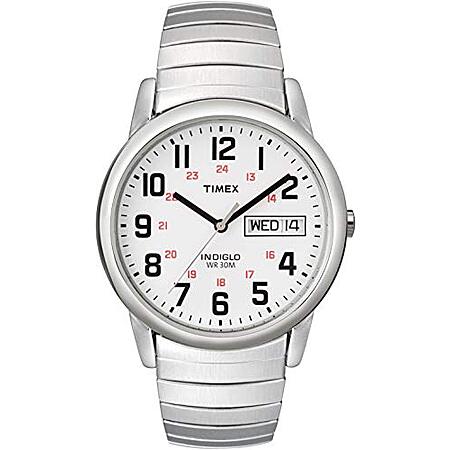 Model: Timex Easy Reader 35mm Day-Date Watch – Silver-Tone Case White Dial with Silver-Tone Expansion Band