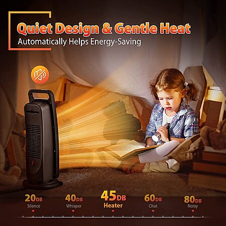 [The Quite & Warm Company When You Sleep] Are you worried that the space heater would adversely affect your sleep? With Air Choice small space heater, you will have a quiet sleep since you can time the thermostat from 1 to 12h with the timer function, and the small room heater will turn off automatically as setting. The thermostat keeps our electric space heater at a pleasant temp from 50 to 95℉ all night and helps save energy and money.