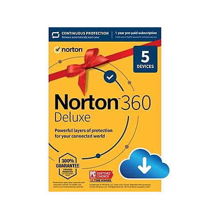Norton 360 Deluxe for up to 5 Devices (2023 Ready), 1 Year with Auto Renewal, Download - $24.99+ 10$ Newegg promotional Gift Card