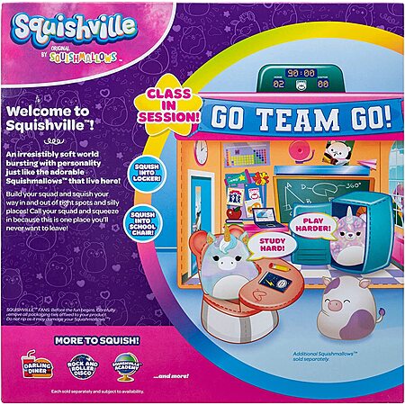 Model: Squishville by Original Squishmallows Deluxe Academy Playset - Includes 2-Inch Eunice The Unicorn Plush, School Desk, Locker, and School Playscene - Toys for Kids