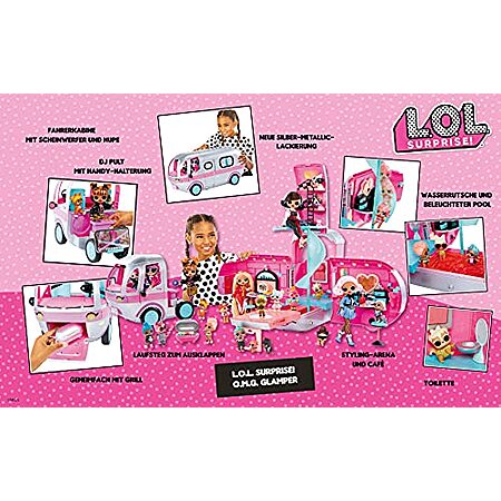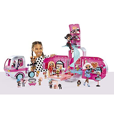 Model: LOL Surprise OMG Glamper Fashion Camper Doll Playset with 55+ Surprises, Fully-Furnished with Light Up Pool, Water Slide, Bunk Beds, Cafe, BBQ Grill, DJ Booth - Gift Toy for Girls Ages 4 5 6 7+ Years
