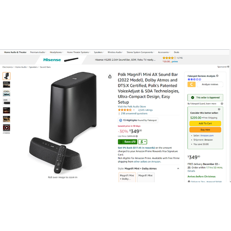 Polk MagniFi Mini AX Sound Bar (2022 Model), Dolby Atmos and DTS:X Certified $299