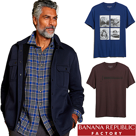 Banana Republic Factory Men's: Deck Shorts $7.50, Tall Graphic Tees