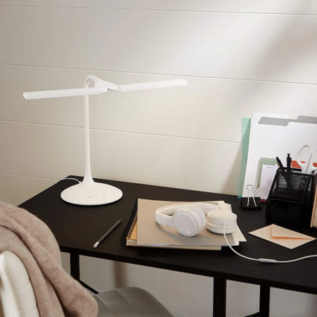 Amazon Basics Dual Head LED Desk Lamp, White (3 Lighting Modes, 40-minute Timer, Touch Control) on sale for