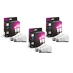 Philips Hue White and Color Ambiance A19 E26 LED Smart Bulb, Bluetooth & Zigbee Compatible (3 packs of 2 bulbs)- $82.99