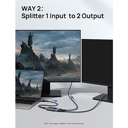 Bidirectional HDMI splitter. Great for dual monitor setup